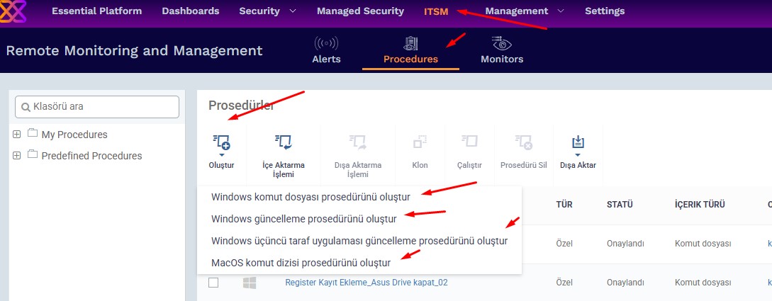Ne işe yarar: Adobe Reader, Chrome, Firefox gibi yaygın programların güncellemelerini yönetmek içindir. Xcitium’un kendi kütüphanesindeki hazır programlar için kullanılır. Biz özel bir MSI (Teramind) kuruyoruz, bu yüzden bu uygun değil.